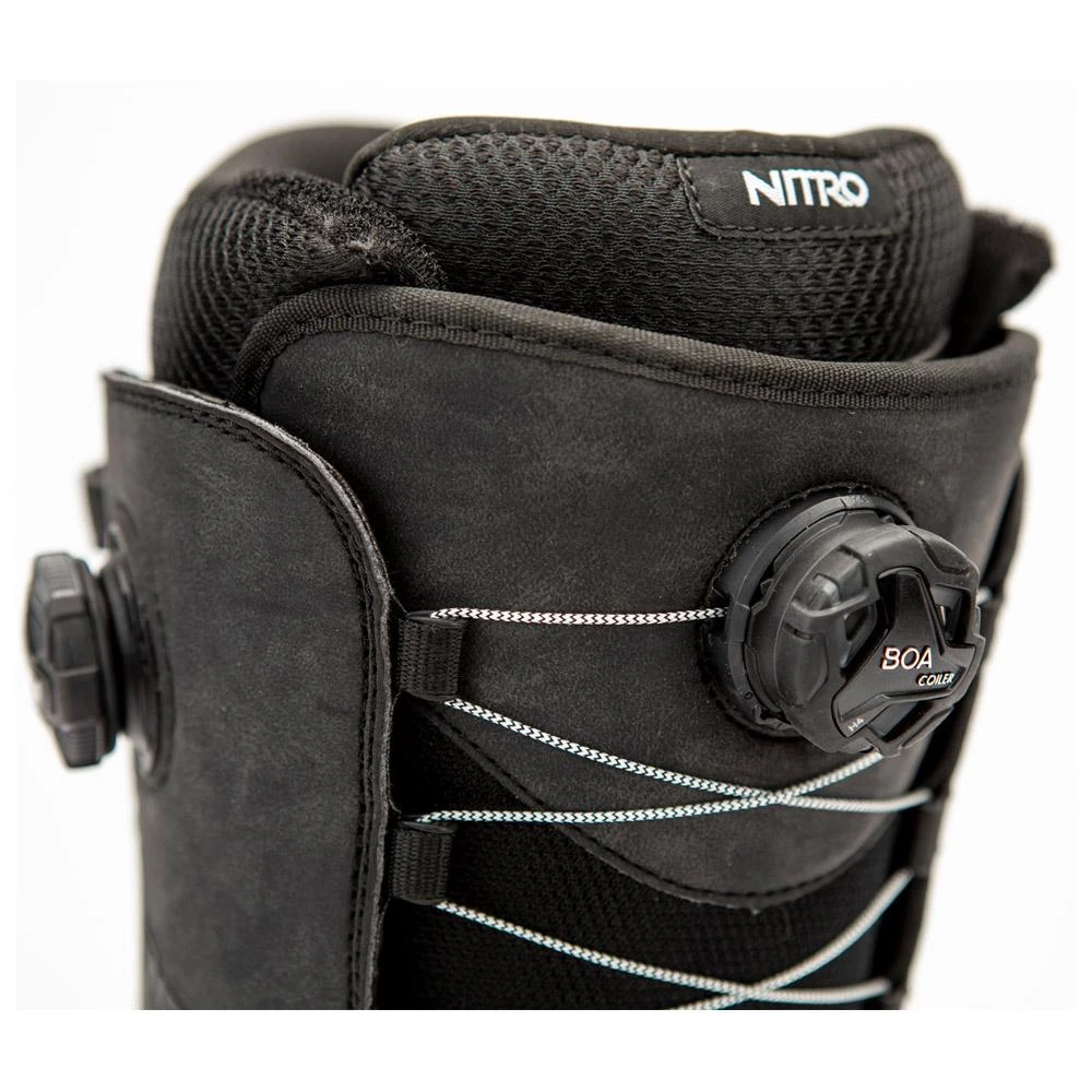The Nitro Chase Dual BOA is a snowboard boot with a fairly stiff flex, plenty of comfort features and a Double BOA quick release system. These two knobs allow you to adjust the top and bottom of the boot independently, for more precision and comfort while keeping the tightening process quick and intuitive.