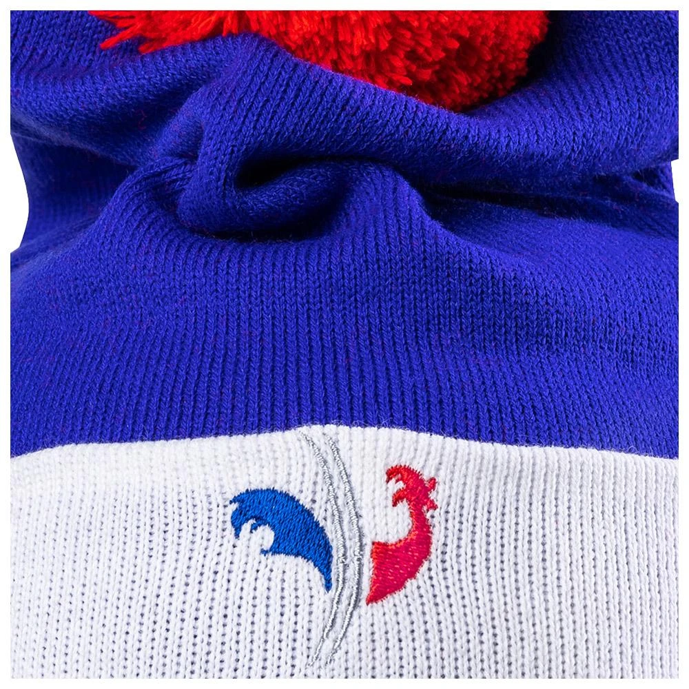 This warm acrylic beanie is worn by the athletes and staff members from the Nordic ski and Biathlon French teams. Warm, it is notably used after races and during podium ceremonies. A perfect beanie to stay warm around the track when encouraging your favourite athletes!